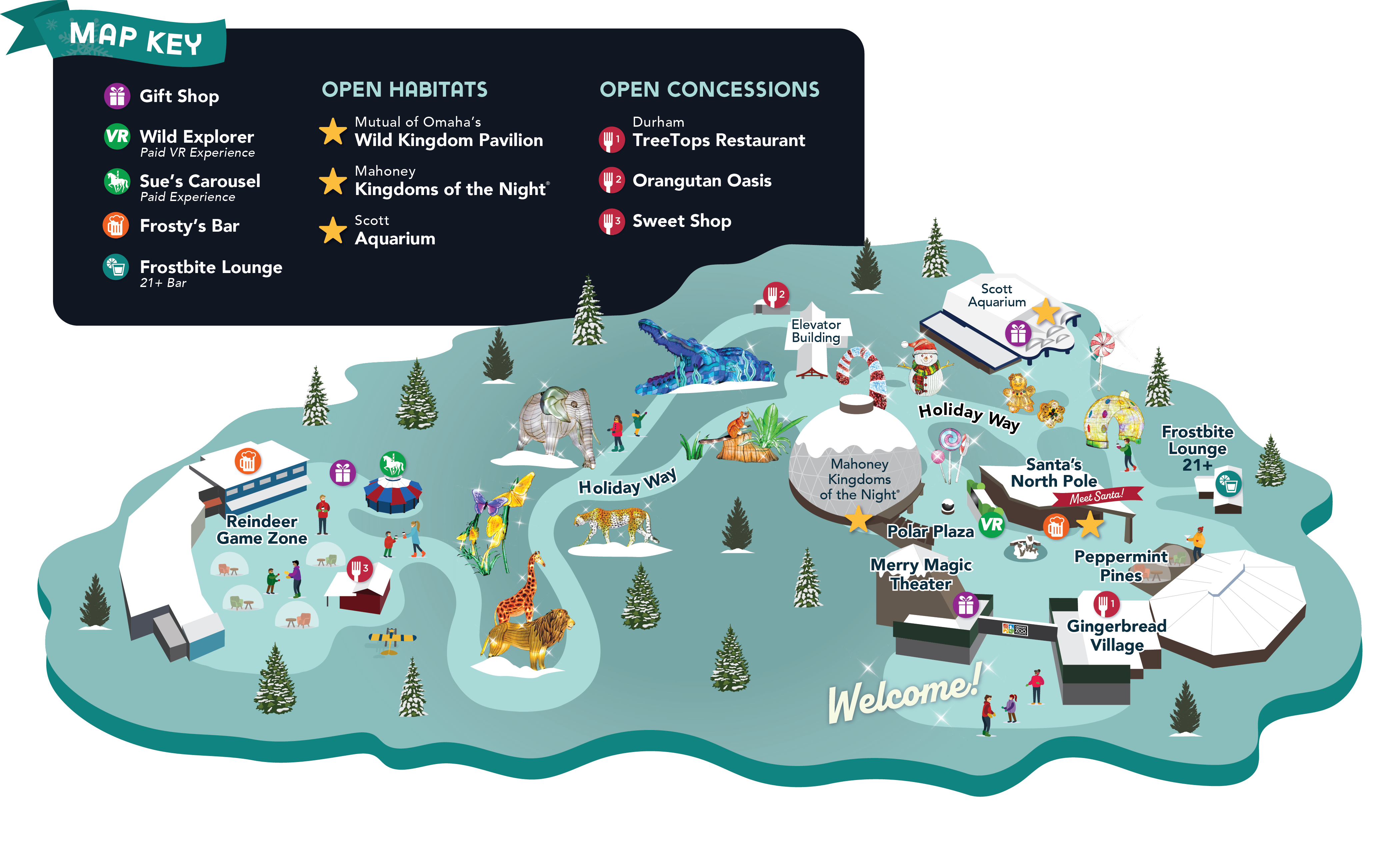 - Outside food and beverages are not permitted in Zoolightful or in your igloo.
